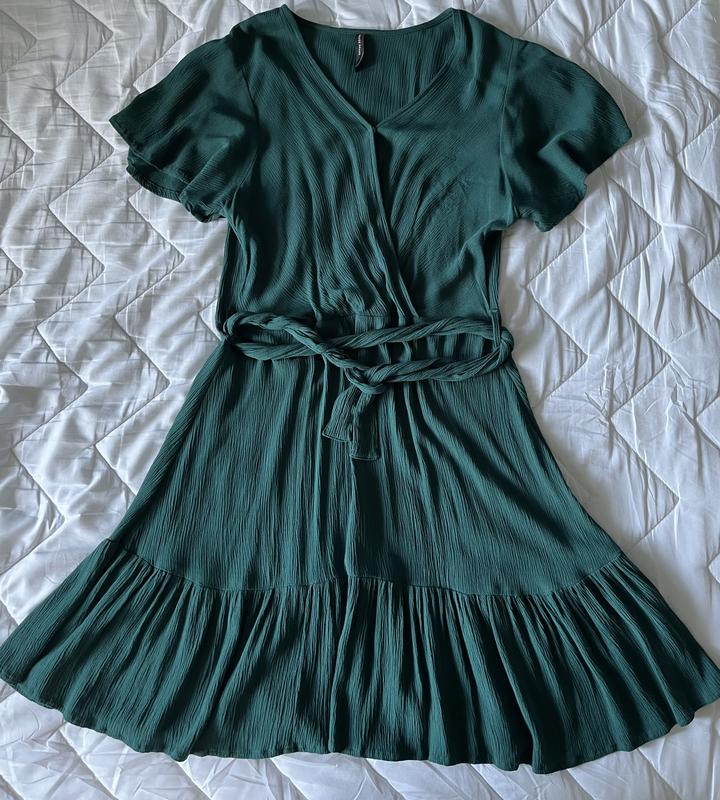 Легка літня віскозна сукня з поясом темно-зеленого кольору, майже нова.
