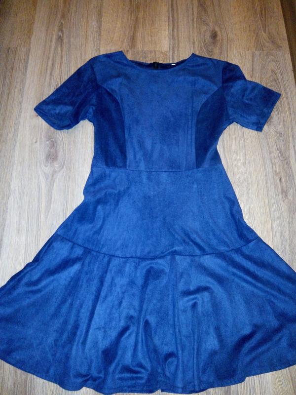 Замшевое платье с коротким рукавом. Темно синего цвета, размер s