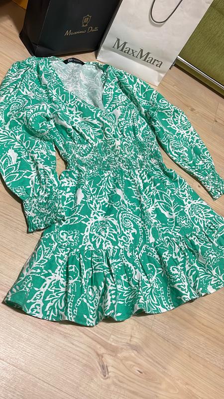 Трендове яскраве плаття Крій 👌🔥 Склад натуральний !! Льон 53 % Круто виглядає на фігурці 🔥🔥 Розмір С Нове без бірки Не одягалося не пралося Довжина 82 см Пог 52 см Пояс 35 см ( тягнеться до 48см ) Поб 54 см
