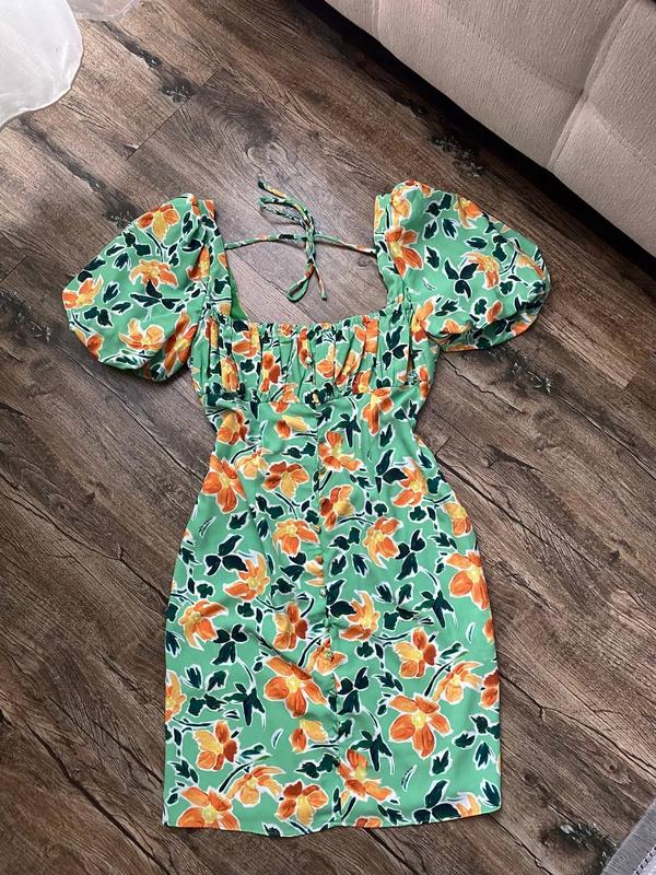 Неймовірна міні сукня в квітковий яскравий принт, розмір S, ПОГ до 90 см, ПОБ 47 см, ПОТ 35 см, довжина 84 см, стан нової речі , можна одягати з приспущеними плечима )