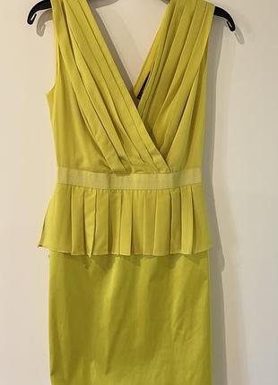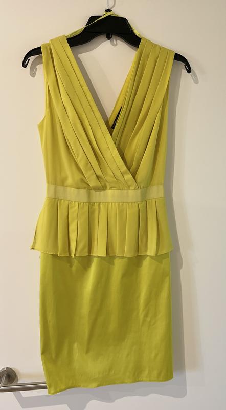 Нова сукня лимонного кольору. Тканина спідниці стрейчева, трохи тягнеться. З задньої сторони спідниці на фото показала, що розріз зафіксований, тобто плаття не ношене. Передня і задня сторона верху з декольте, що теж дає змогу платтю гарно лягти по фігурі. Розмір - S-М/38/44 Параметри сукні: п/о грудей - 42,5 см п/о талії - 38 см п/о стегон - 45,5 см довжина верхньої частини - 38 см довжина від спідниці - 56,5 см