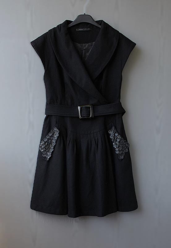 Шерстяное платье Бренд MARC JACOBS В очень хорошем состоянии Цвет черный Размер S/M (на фото манекен размер М) Состав: 50% шерсть, 50% акрил Замеры: Обхват груди 88-92 см (защипы под грудью и под лопатками дают дополнительный объем) Обхват талии 78 см Длина юбки от талии 54 см Ширина плеча 17 см Длина изделия 88 см Карманы украшены пайетками из натуральной кожи Платье застегивается на боковую потайную молнию Пояс с пряжкой из пластика