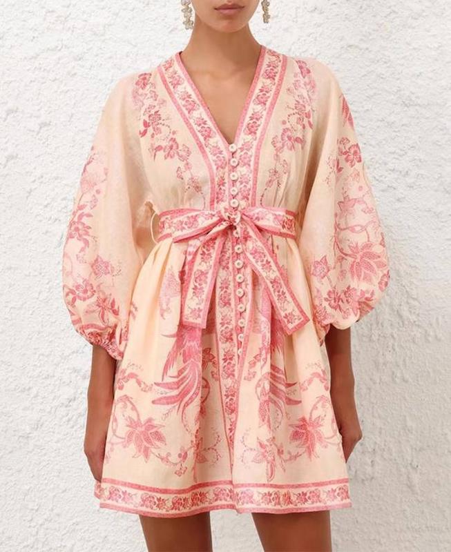 Платье бежевое с розовым