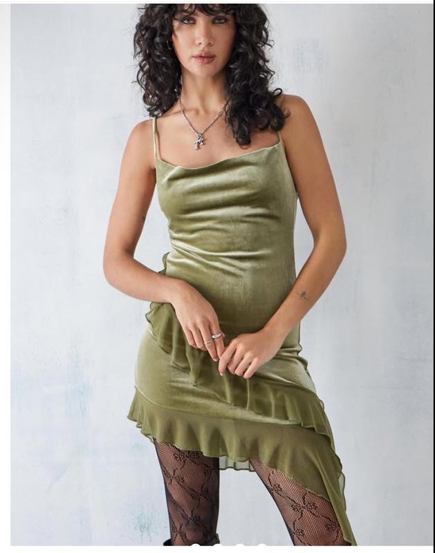 Велюрова хакі сукня з рюшами Розмір М 500грн