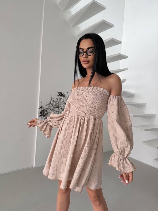 Новинка, яка вже в наявності 💘 Бавовняна сукня з прошвою 🤍 Модель 2515 ▫Тканина: муслін з прошвою , хлопок 100% ▫Розмірний ряд : 42-46, 48-52 ▫Кольори: беж, мокко, барбі, чорний та молочний Наші фото Реал Муслінова легка сукня з прошвою, утягуючою резинкою, яка візуально зменшує талію ⏳ Дуже гарно підкреслює форми і лягає по фігурі🌸