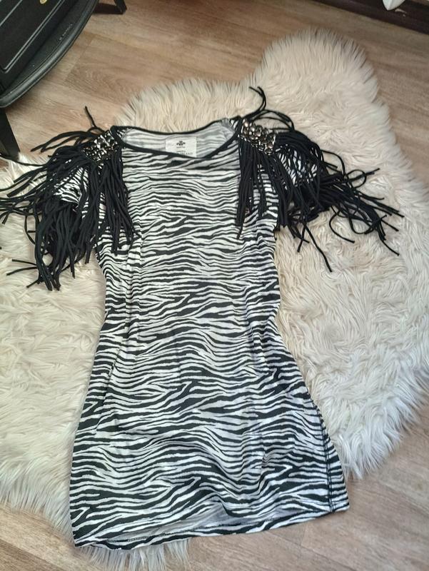трендовое женское платье, которое сочетает в себе три тренда 2025 года: анималистичный принт зебра, металлические кнопки и бахрома – для яркой и смелой леди с изысканным вкусом и смелостью эпатовать собственной яркостью!!! параметры: длина 77 см, ширина плеч 46 см, пот 40 см, поб 40 см. Идеально комбинируется с казаками