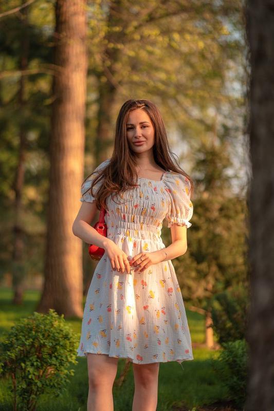 Легкое летнее мини платье из муслина в цветочный принт