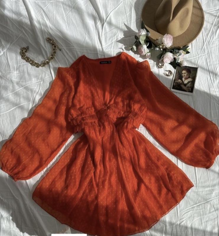 Оранжевое платье из хлопка, идеальный выбор для любого повседневного образа. Стан идеален. Размер М.