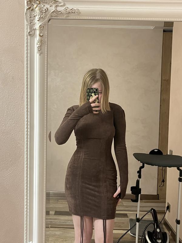 Коричнева дуже гарна сукня,можно трішки підтянути с низу ,розмір S
