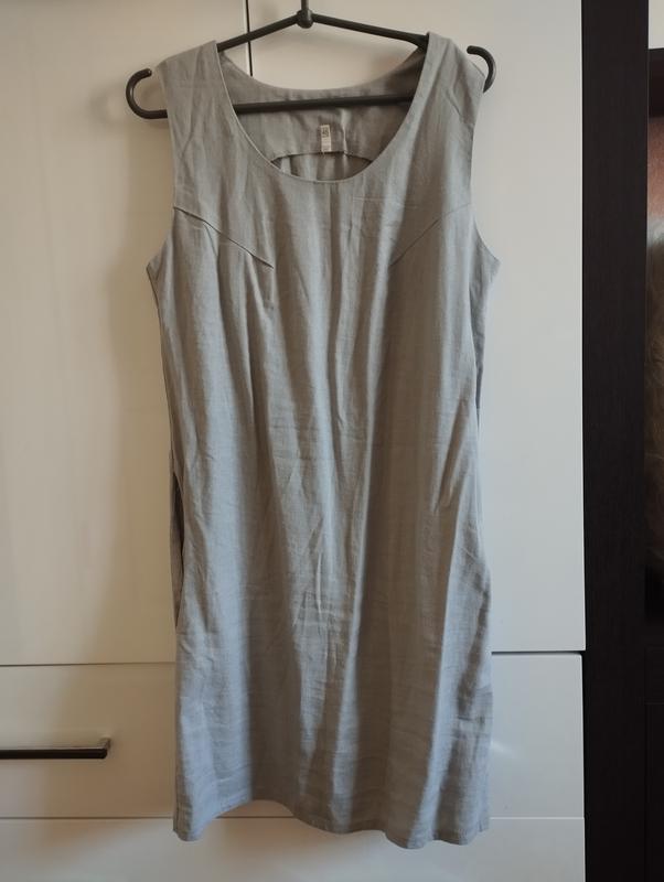 льняное платье, с карманами сбоку, пог 45, пот42, поб 48, длин 88