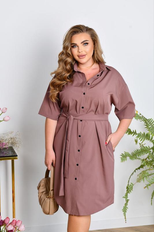 Платье рубашка женское с поясом свободного кроя 48-66 мокко (коричнево-бежевый)
