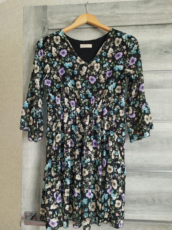 легкое шифоновое платье, три четверти рукав, слегка расширенный