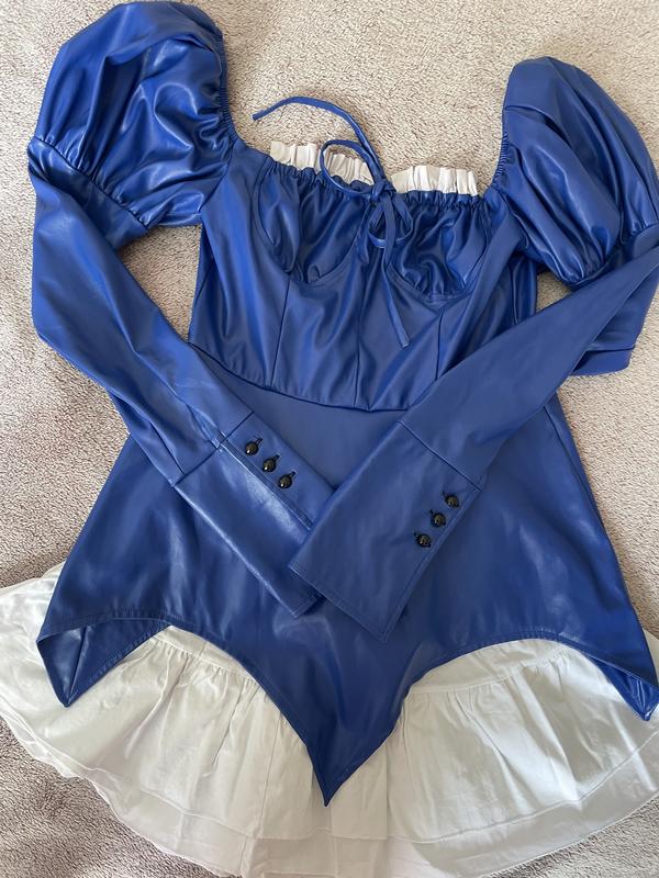 Плаття з еко-шкіри, з бавовняною спідницею.