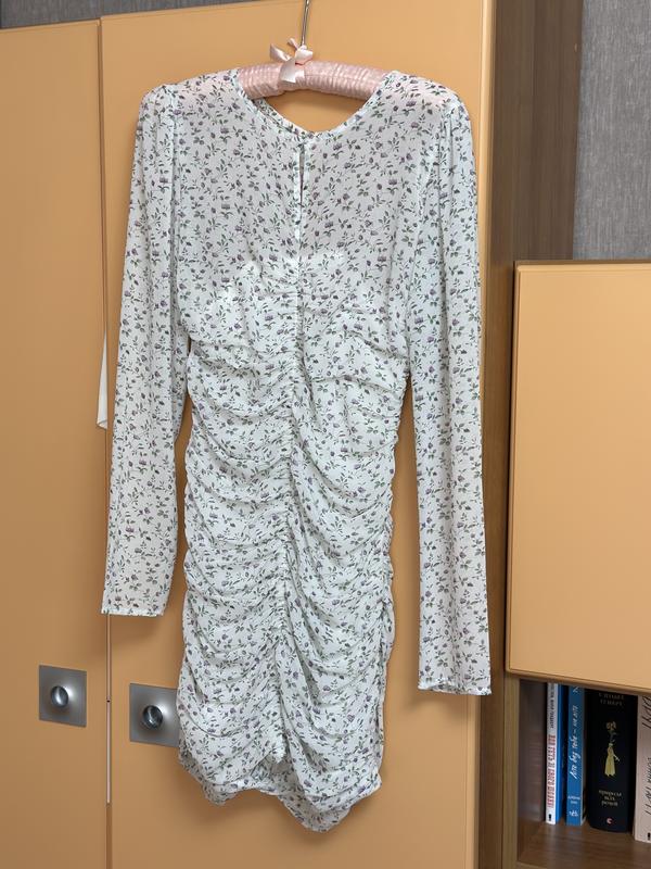 Сукня з шифону Довжина 80 см Довжина рукава 64 см ОГ 74 см На бедра до 87 см Стан ідеальний Ззаді на замку + гудзик