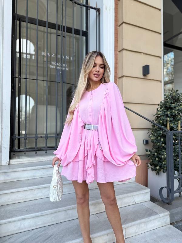 Модель 5643 Женское трендовое платье Размерный ряд S,M,L,XL Ткань креп, очень приятная на ощупь ткань Талия на резинке, спереди застегивается на пуговицы Цвета розовый, белый, голубой, мокко и черный Пасок в комплект не входит Супер качество Цена 900 грн кат