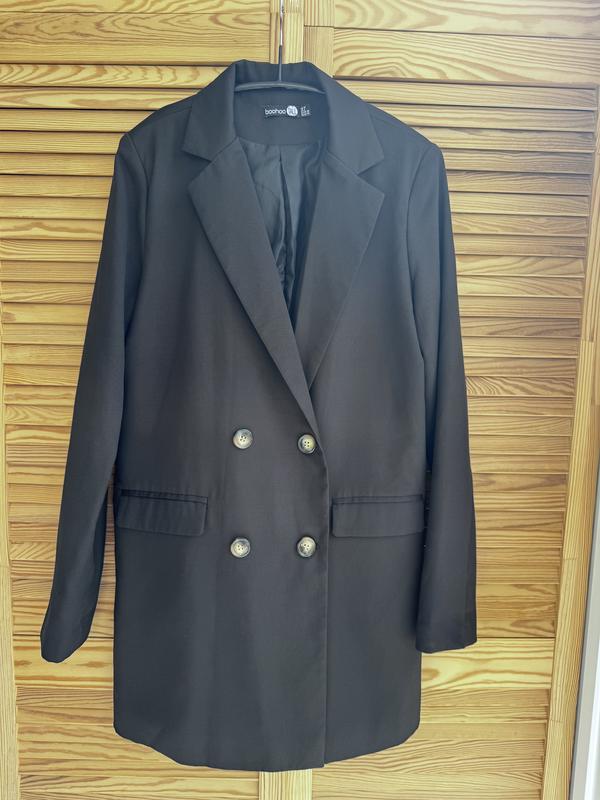 Плаття піджак чорного кольору в розмірі 10 ( М/L) Має два кармани. Застібнути на ґудзики можна як на ліву так і на праву сторони