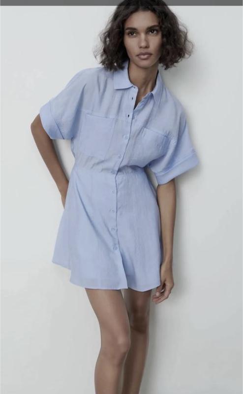 Короткое платье голубого цвета, ткань очень приятная, размер по бирке s но будет и на xs