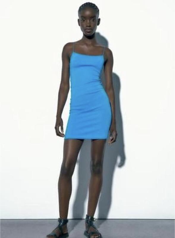 Платье 👗 женское летнее на бретелях мини в рубчик базовая трендовая модель синего красивого цвета