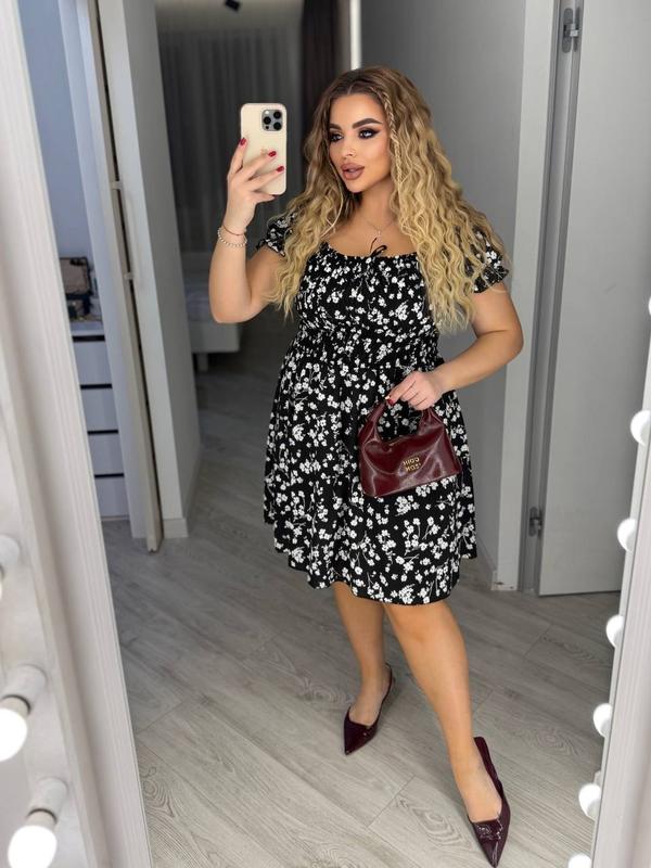 ‼️‼️ НОВИНКА ‼️‼️ Сукня Код: 268/1045 Ціна: 970 грн Тканина: штапель принт. Кольори: чорний, білий, червоний, мокко, голубий. Розміри: 48/50,52/54,56/58. Виміри: (48-50) ОГ = ОТ резинка 80-110, длина 94, рукав 20. (52-54) ОГ = ОТ резинка 90-120, длина 96, рукав 20. (56-58) ОГ = ОТ резинка 100-130, длина 98, рукав 20. Верх – гумка, легко тягнеться.