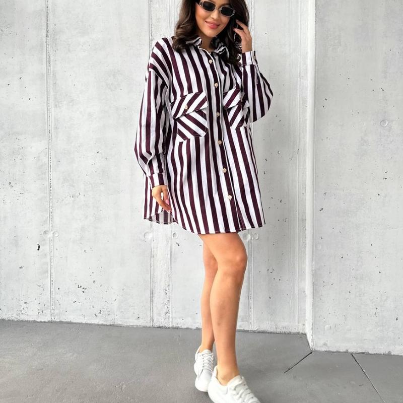 ™️ Одежда направления от ВЫРОБНИКА ✅ Все Трендовые НОВИНКИ 👌После платью с подпиской 150 грн 📌Подписывайтесь 🤍Наружнее платье-рубашка оверсайз кроя, выполненное из натурального льна с бамбуковыми пуговицами ☺️ попеклуй о здоровье своей кожи, выбирай натуральные ткани🩶 ▫️Тканина: льон ▫️Размер: 42-50 ▫️Цвет: полоска беж, Бурунди, хаки ▪️Мод.: 049
