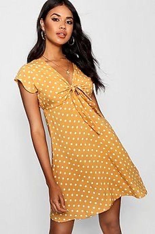 Літня стильна сукня в горох Розмір 12 Маломірить Довжина 83 ПОГ 43-47 ПОТ 36 тягнеться ПОБ 56
