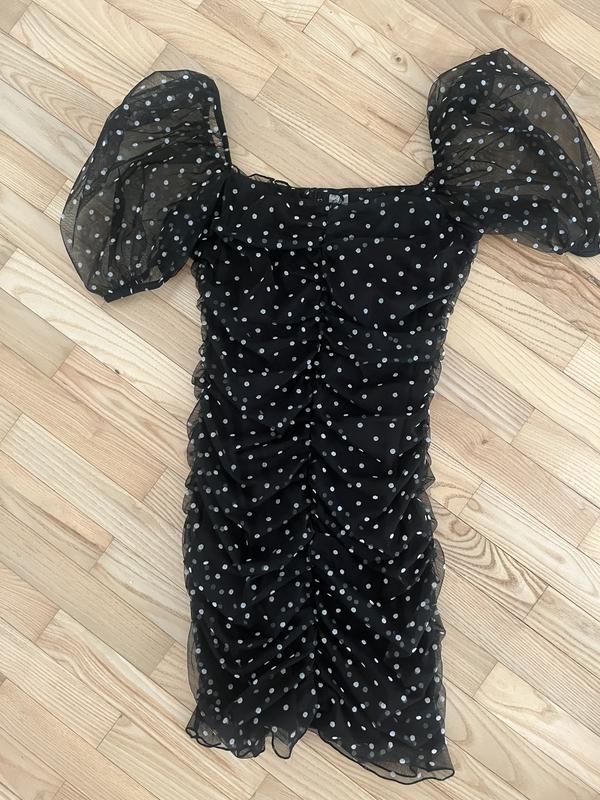 Чорна сукня від h&m, дуже гарно сідає по фігурі Заміри: до уваги!!! сукня тягнеться, як і довжина так і по всій фігурі, тому підійде на розмір від xs до м Довжина 62 Пів обхват грудей 32