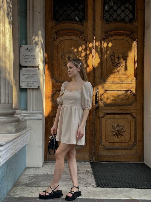 Женское платье мини льняное с открытой спиной летнее платье бежевое Арт. 05 Новичка невероятно легкое и нежное платье из льна, которое идеально подойдет на лето Тканина: льон Размер: с-м, м-л Цвет: беж Уход: ручная стирка до 30° Производство: Украина _____________________ Длина 62 см Груди 80-90см/ 86-105 мм Талия 65-72/70-80 см Бедра свободно