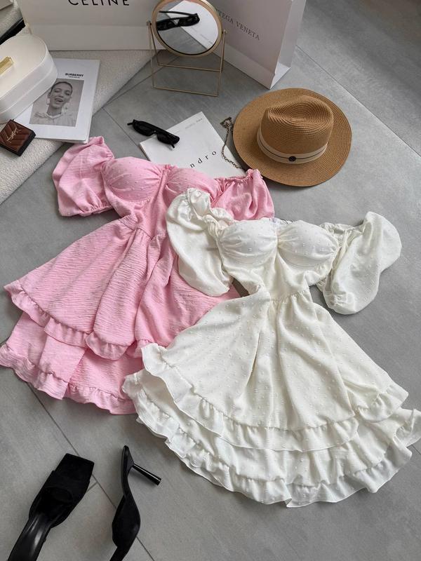 Легкое мини платье с чашкой пуш-ап и воланами 🦋
