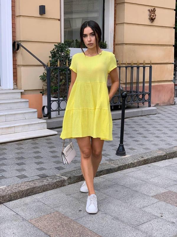 Продам новое, легкое, летнее платье из муслина 50р. мне не подходит размержаль (замеры в груди 56см, длинна91см,е карманы