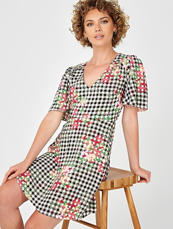 Брендовое платье в клеточку "George" с цветами. Размер uk10. Без застёжки, талия сзади на резинке. Замеры: -ПОГ - 47 см; -ПОТ - 36 см (тянется); -ПОБ - 58 см; -длина - 86 см. Без дефектов. В идеальном состоянии! Параметры манекена, на котором сделано фото: -рост - 185 см; -обхват груди - 87 см; -обхват талии - 64 см; -обхват бедер - 92 см.