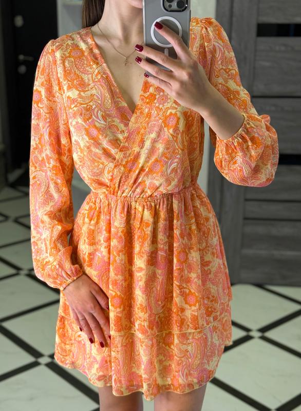 Нова сукня з біркою, розміру S, помаранчевого кольору, з декольте.