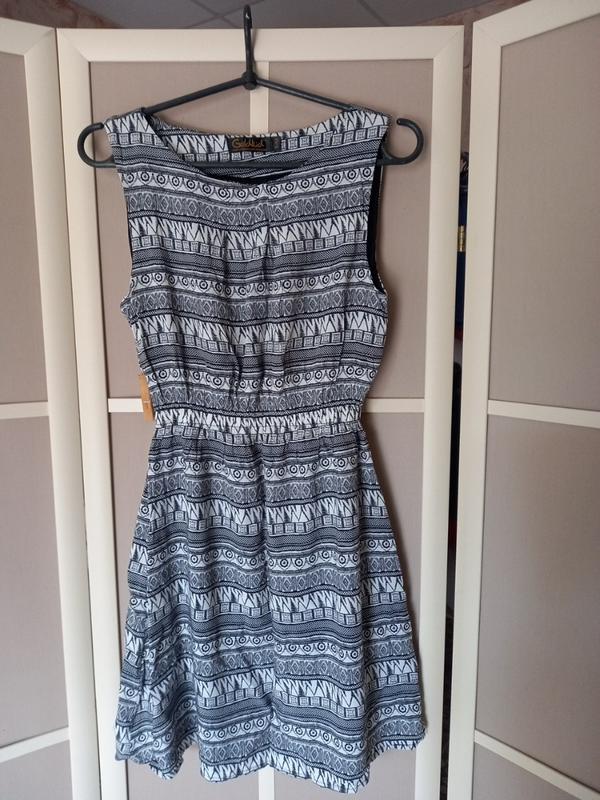 Сукня з принтом ,талія на резинці з підкладом.Об гр 44сс.,об.тал 35см.,. довжина 83см.