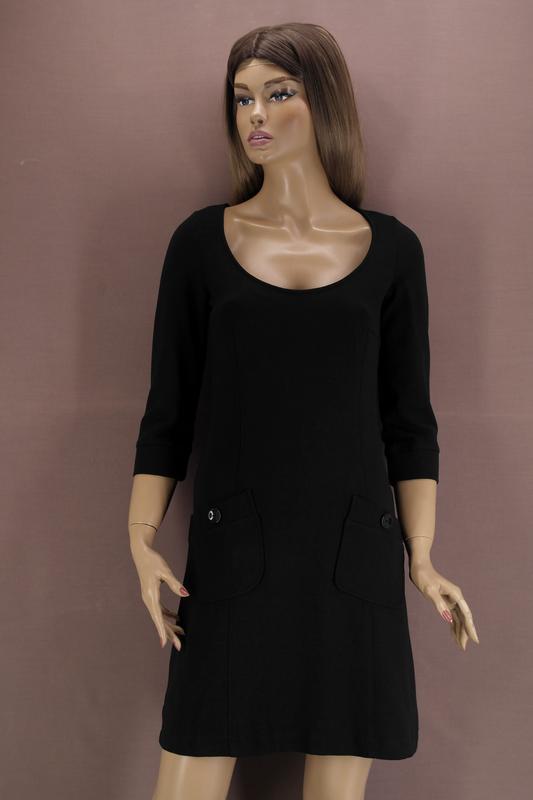 Брендовое черное платье "Warehouse" с карманами. Размер uk12/eur40. Материал плотный: 73% вискоза, 24% полиамид, 3% эластан. Без застёжки. Замеры в нерастянутом виде (ткань тянется): -ПОГ - 43 см; -ПОТ - 37 см; -ПОБ - 45 см; -длина рукава - 47 см; -длина платья - 90 см. Без дефектов. В идеальном состоянии. Параметры манекена, на котором сделано фото: -рост - 185 см; -обхват груди - 87 см; -обхват талии - 64 см; -обхват бедер - 92 см.