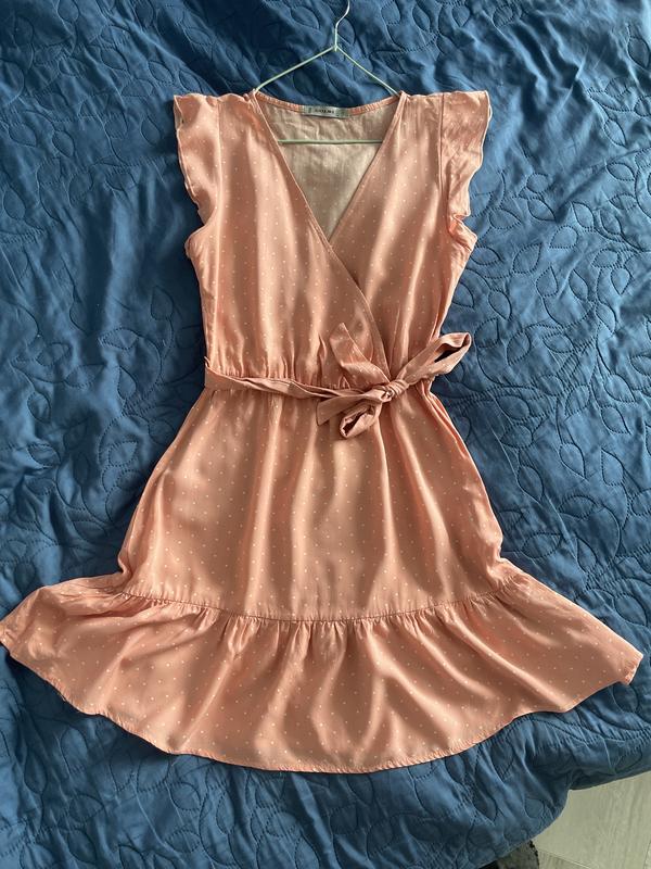 Сукня дуже класна , пояс на резинці, груди на запах. Дуже легка і приємна до тіла