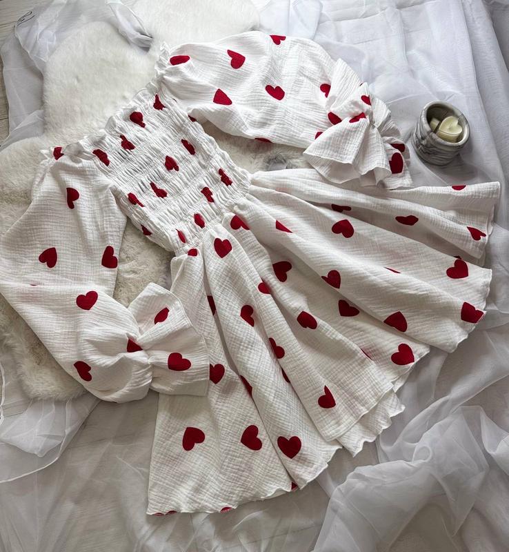 🔥Фото Реал ♥️ Ніжне плаття із сердечками Мод:689 Ціна:920 грн. Муслін 100% хлопок ❣️Тканина дуже приємна до тіла Кольори: точно як на фото Розміри:42-46 ❤️🔥