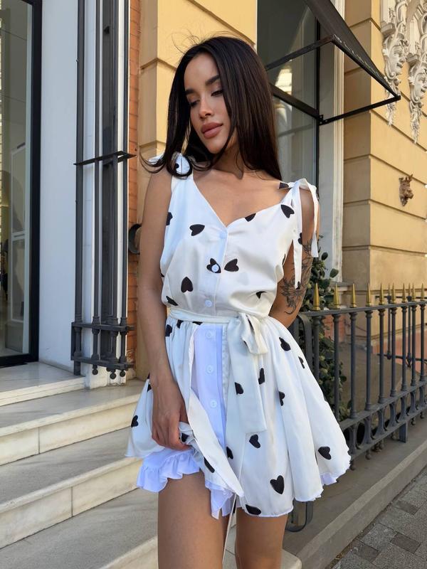 Платье сердечко ❤️ Мод: 787-7809 ▪️Ткань: шелк Армани (подкладка вискоза) ▪️Цвет: белый с красным сердечком, белый с черным сердечком, черный с белым сердечком ▪️Размер: 42-44, 46-48