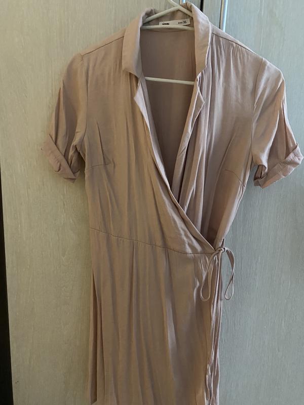 Сукня коротка на запах пудрового кольору,вдягалась 1 раз. Размер S-M