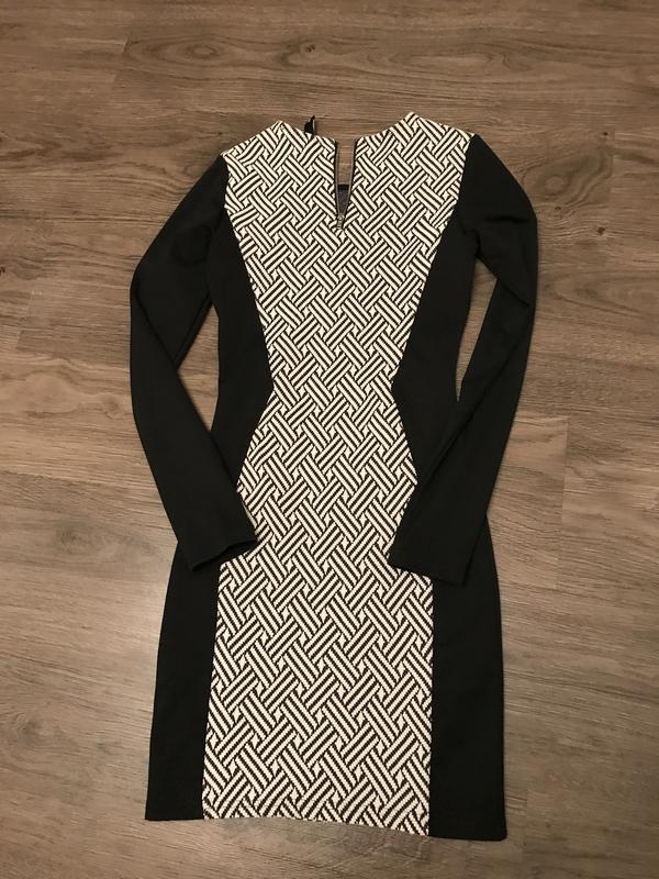 Чёрное платье размера Xs, обтягивающие с черно-белой вставкой. Изумительно садиться по фигуре, без вырезов.