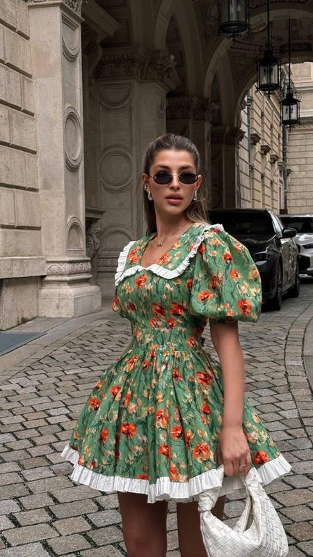 Легкое романтичное мини платье приталенного силуэта с пышной юбкой - с пачкой бантик, с помощью которого подчеркивается талия, рукавами фонариками с контрастной оборкой и нежным воротничком 🤍 Нижние шортики добавляют объем юбки и добавляют удобства в повседневной жизни🥰 Размер с и м