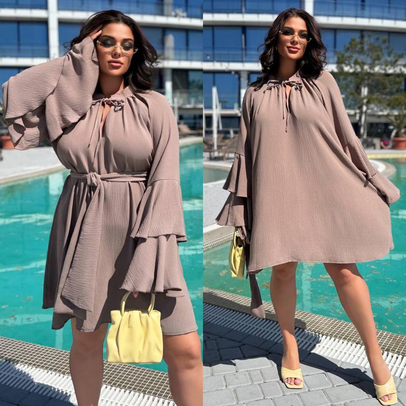 ✨Модель 4413 15581 ✨Размер:42-48,50-56 ✨Ткань:американский креп-жатка (легкая,текстурная, устраивающая, практичная) ✨Цвет: белый,беж,мокко,черный ✨Легкое платье oversize с рукавами-оборками и поясом на талии Замеры: Размер 42-48 рукав-70, длина-84 Размер 50-56 рукав-75, длина-94