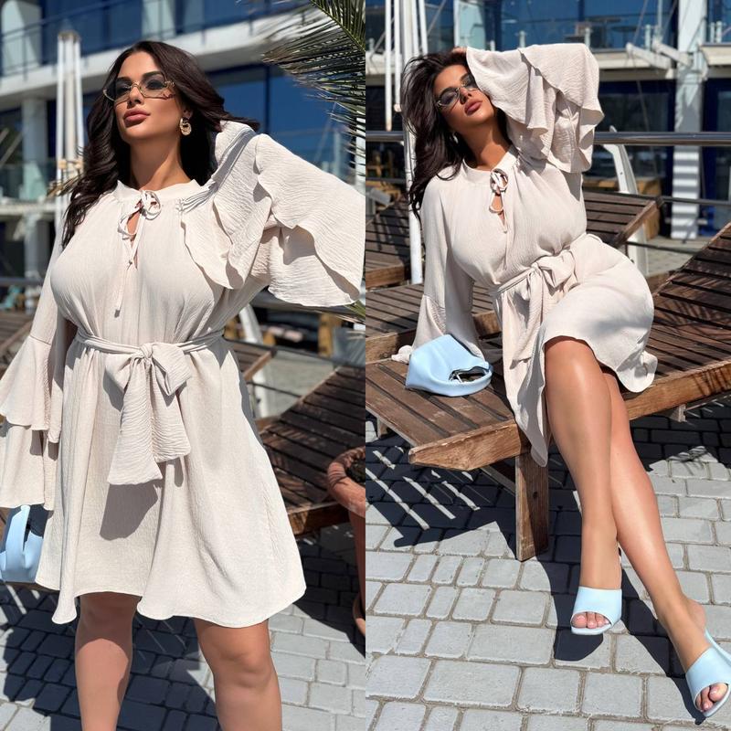 ✨Модель 4413 15581 ✨Размер:42-48,50-56 ✨Ткань:американский креп-жатка (легкая,текстурная, устраивающая, практичная) ✨Цвет: белый,беж,мокко,черный ✨Легкое платье oversize с рукавами-оборками и поясом на талии Замеры: Размер 42-48 рукав-70, длина-84 Размер 50-56 рукав-75, длина-94