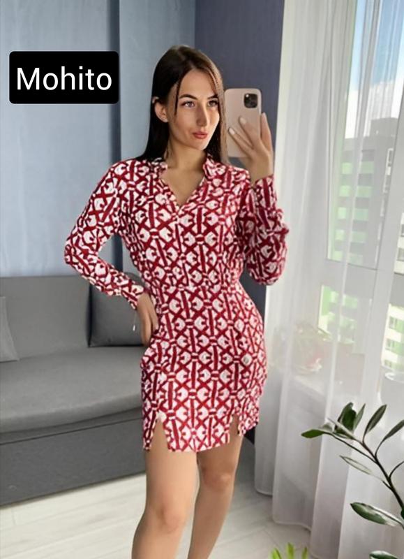 Платье женское сорочка мини красного цвета в принт от бренда mohito 38