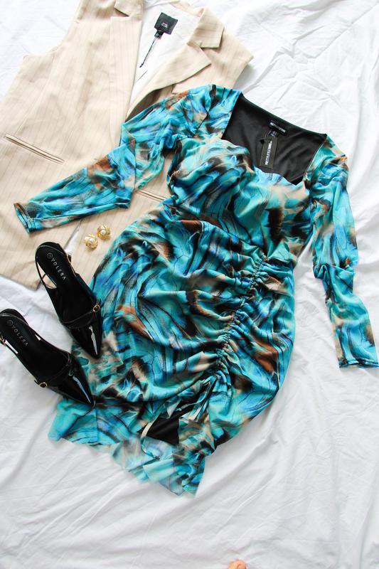 18 розмір але краще на 20 Обʼєм грудей 55/65 Талія 50/55 Бедра 60/70 Довжина 105