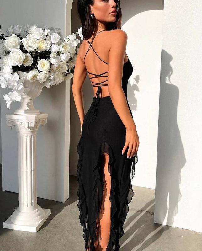 Жіноча чорна нарядна сукня на бретелях з віскози