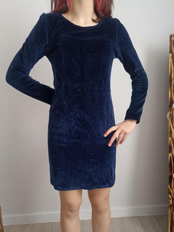 синее велюровое платье в красивом состоянии размер м