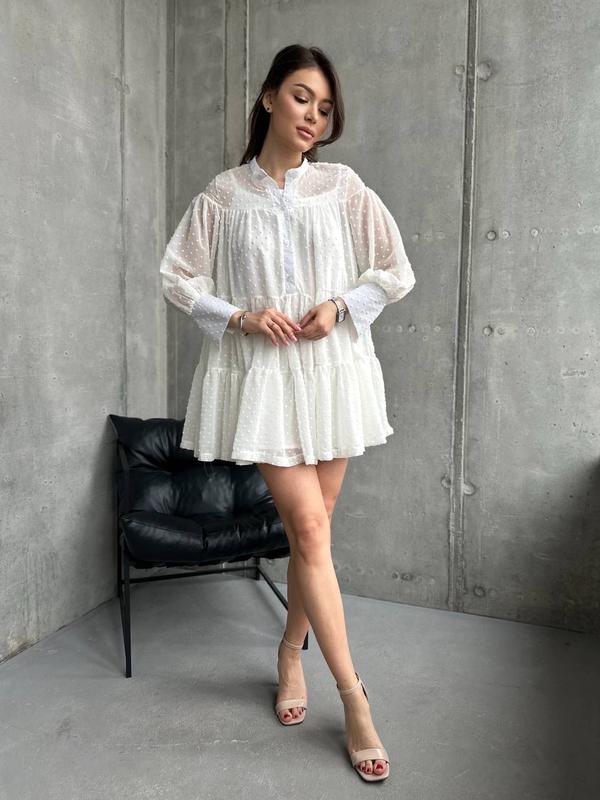 🤍Дуже ніжна, елегантна сукня ☺️ складається з нижньої частини - сукня-майка з мʼякого софту та верхньої - легкої та обʼємної сукня з шифону жакард🩶 ✨Фотореал✨ ▫️Тканина: шифон жакард, софт ▫️Розмір: 42-48 ▫️Колір: молочний, капучино ▪️Мод.: 043 999 грн