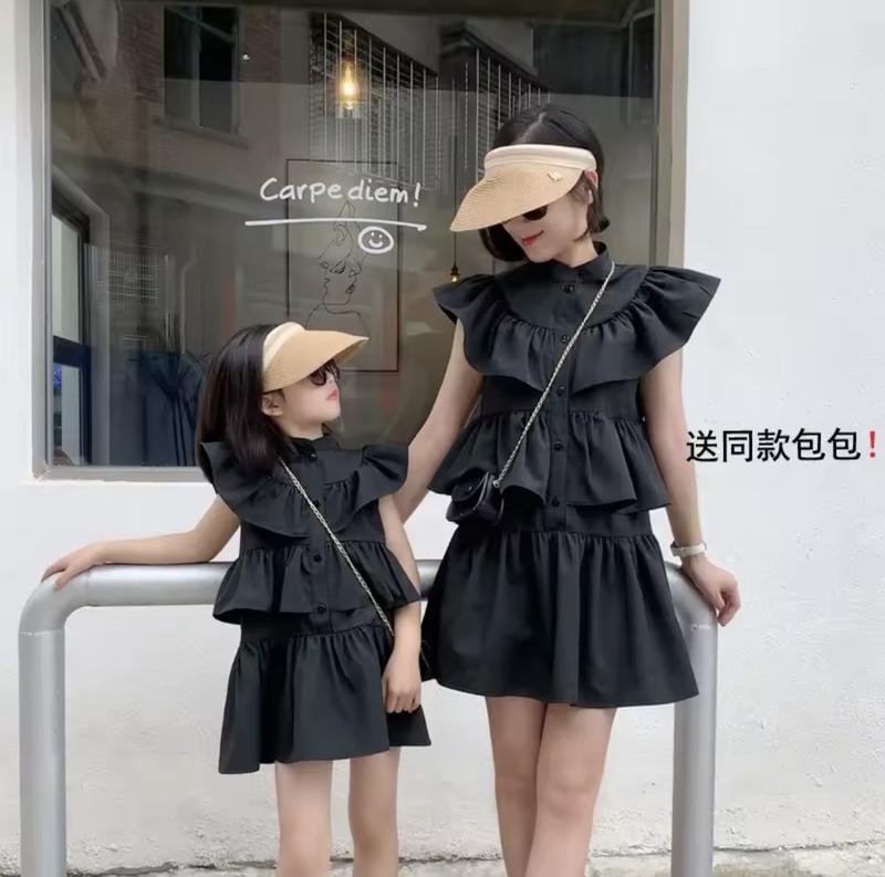 Парний образ мама-дочка чорна сукня з оброками xl- 2 роки family look