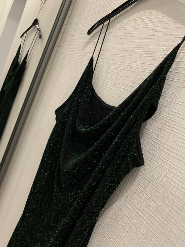 Шикарна сукня розміру М чорна,але прошита смарагдовою ниткою. Просто неймовірно виблискує. Ідеально сідає по фігурі,не підкреслює недоліки. А декольте взагалі🔥 Додаткові фото чи заміри за потреби надаю.