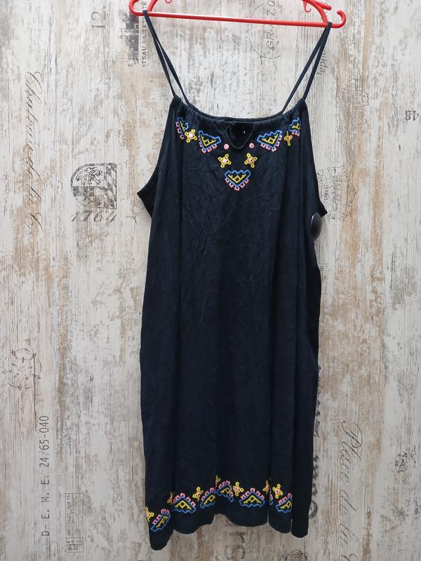 отличное легкое хлопковое трикотажное платье на бретелях черного цвета с вышивкой, состояние новой вещи, Индия.