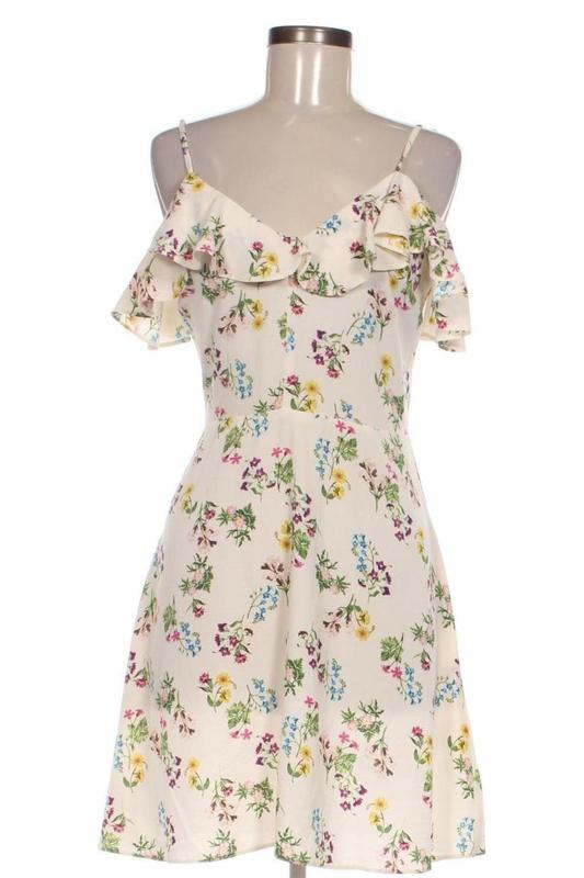 Бежевое платье в цветочек с крылышками цветочное принт платье легкая летняя.